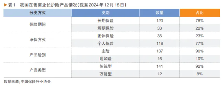 第一财经记者查询中国保险行业协会信息发现,目前市场在售的护理保险有159款,在4821款健康险产品中占比仅有3.3%。