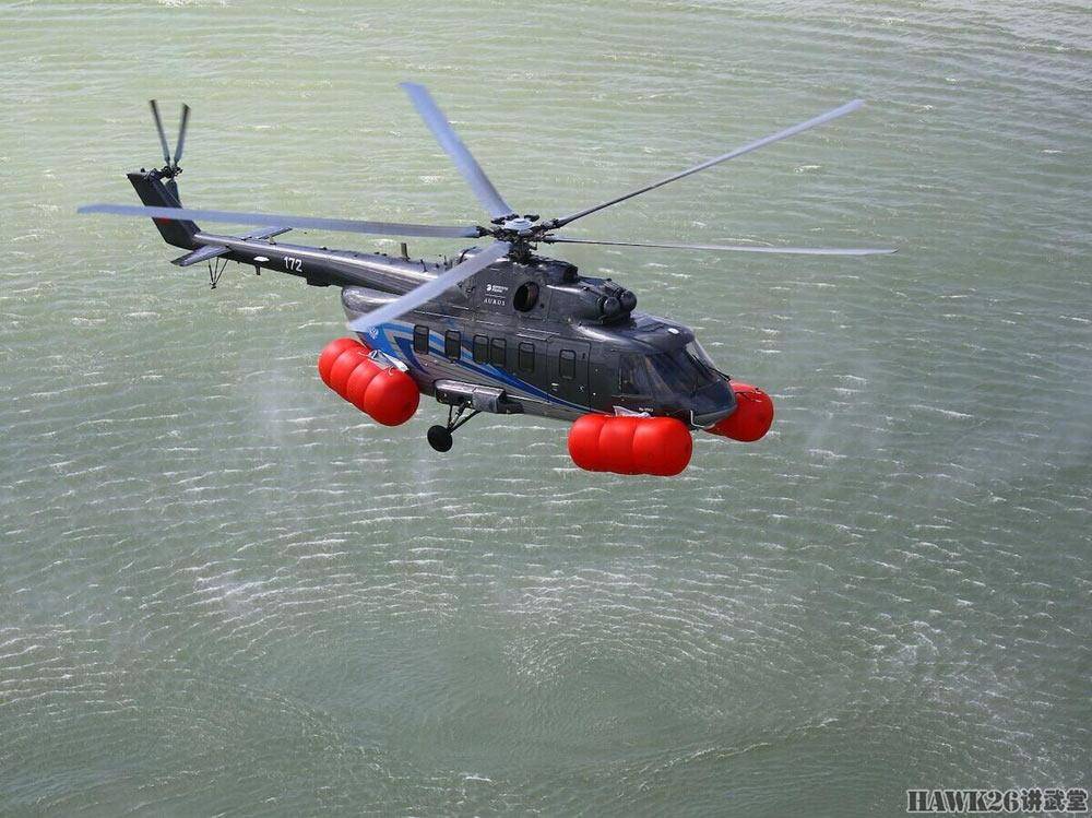 不得不在水面上迫降时,这些浮囊会自动展开,从而帮助直升机保持漂浮状态。