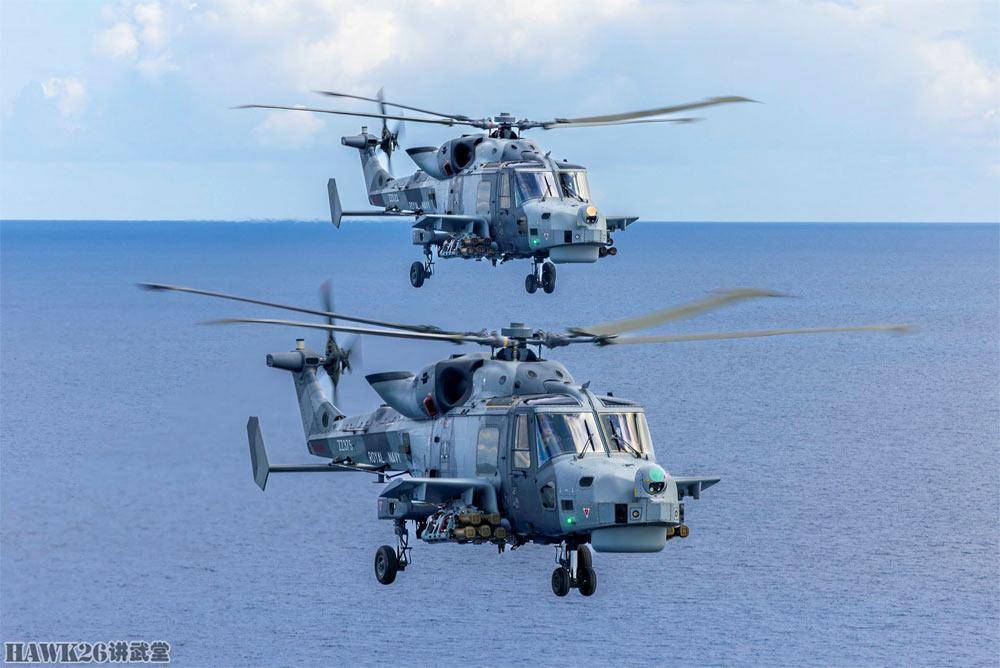 英国皇家海军第815海军航空中队的“野猫”HMA Mk2(HMA2)直升机,挂载“马特莱特”轻型多用途导弹,双机编队飞行在英国驻塞浦路斯部队(BFC)基地上空,加强防空能力,应对该地区日益紧张的局势。英国皇家海军让HMA2直升机挂载“马特莱特”导弹,有效拦截自杀式无人机。