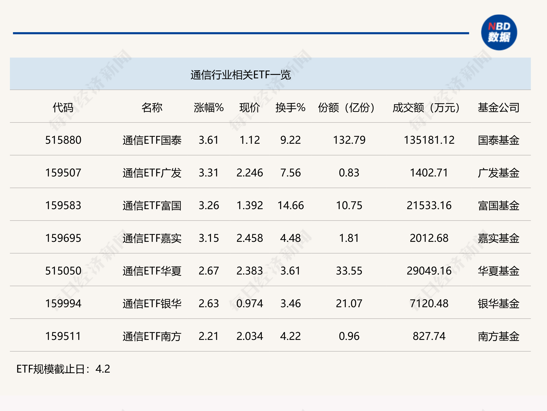 行业ETF风向标丨通信ETF国泰半日成交近14亿元,4只通信ETF半日涨幅超3%