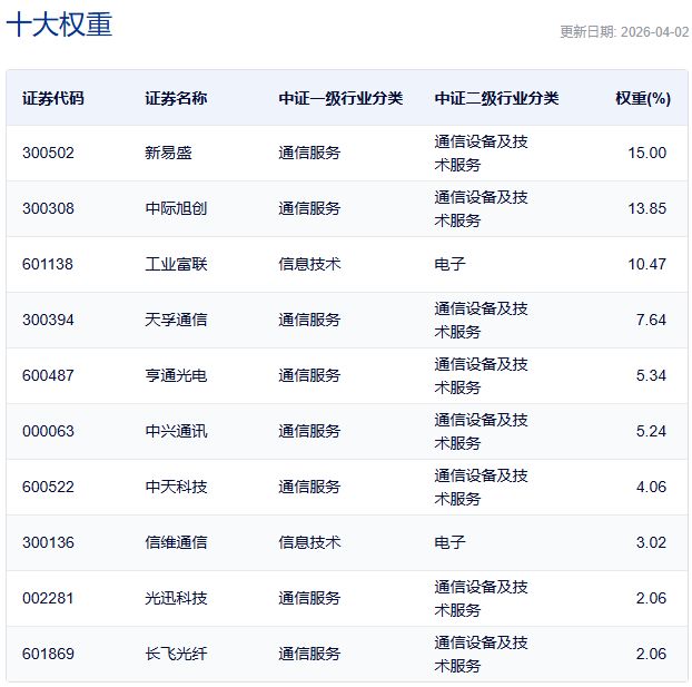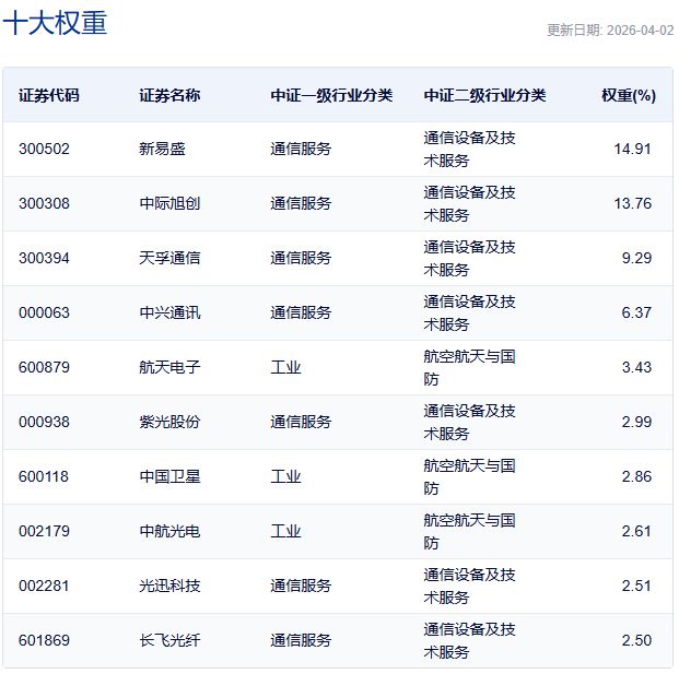 中证全指通信设备指数从中证全指样本股中按中证行业分类方法选出通信设备行业股票。前十大权重股涵盖了大量5G概念股,指数历史表现优异,成长性高。